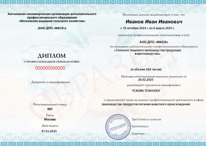 - Образец диплома о профессиональной переподготовке.